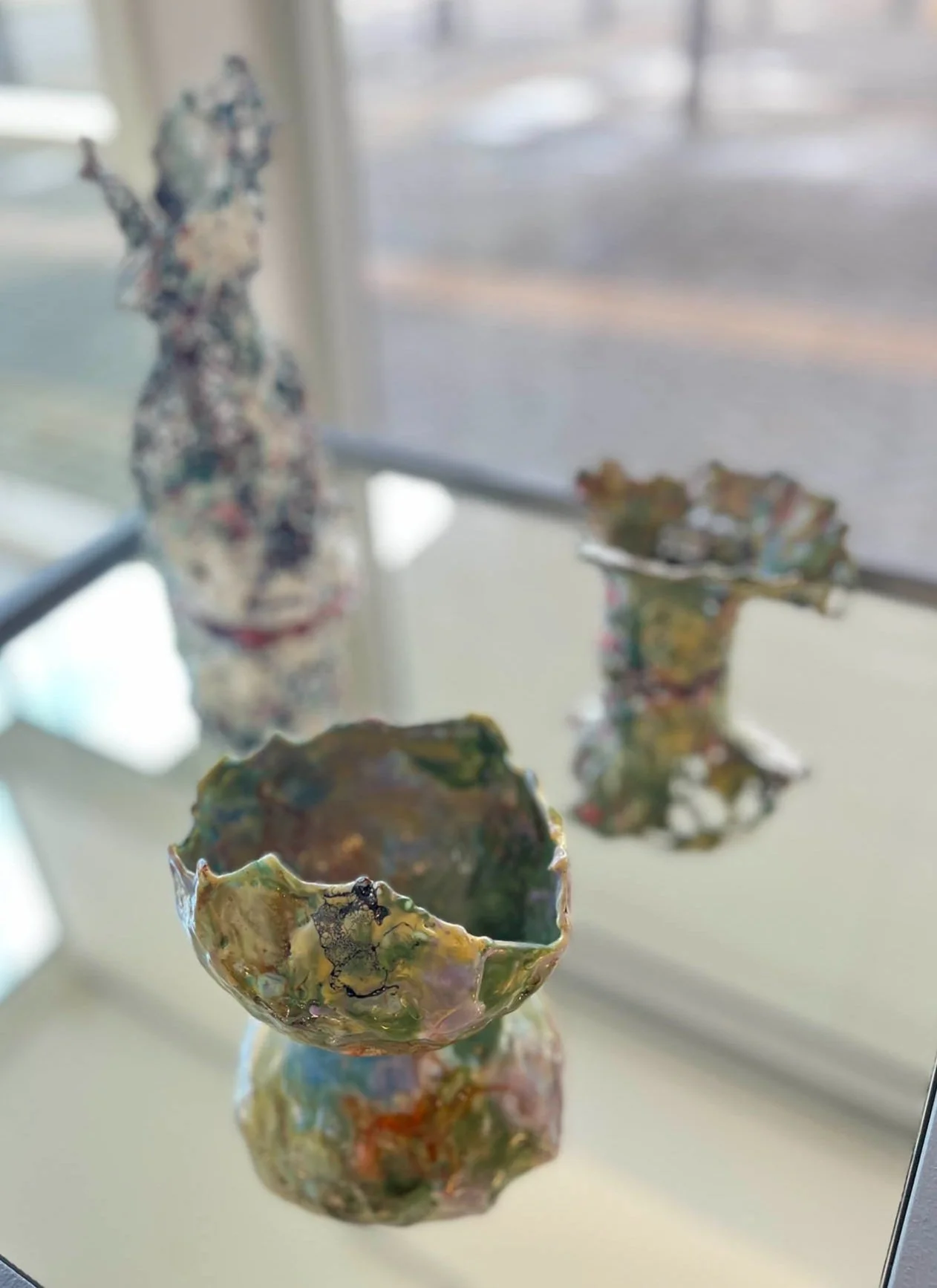 built upon a foundation of broken treasures and forgotten objects, layered beneath a wreath of both living and dead flowers. This piece explores the tension between what we throw away and what we choose to celebrate, suggesting that beauty often emerges from the overlooked and discarded, blurring the line between loss and renewal.